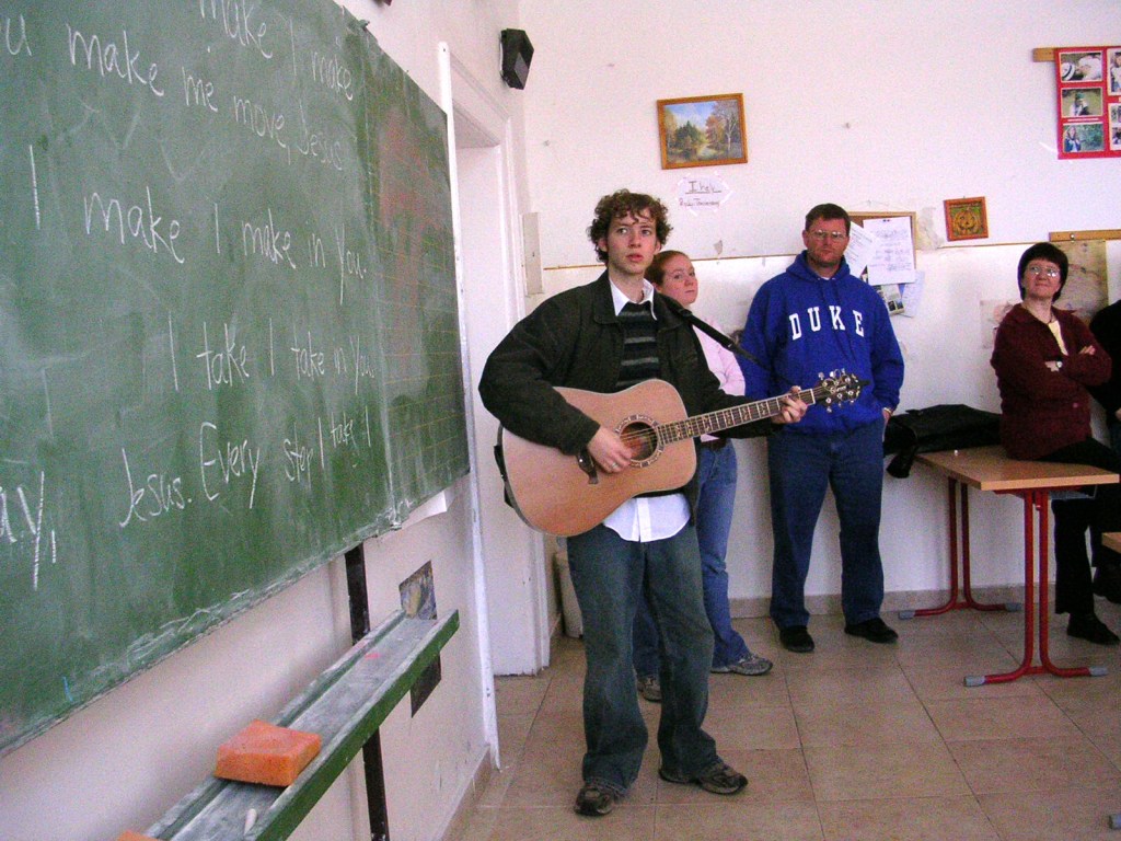 The following winter, 2006, Lauren kept thinking about and dreaming about the Hungarian friend she connected with the year before. Then one day in chapel, and week and a half before spring break, she just knew the Lord was telling her to go back to Budapest for spring break. Her newfound Hungarian friend had been begging her to come stay! Only… There wasn’t a trip planned with NGU that year. She called Jason to ask him what to do, and Jason suggested she go talk to the school president, Dr. Jimmy Epting. Jason told her that Dr. Epting would help them figure it out, and that she should just go talk to him! After hearing her heart and getting Dr. Allen McWhite to look at costs, Dr. Epting promised to cover half of the trip if the Kittrells could come up with the rest. It would be $1500 for the Kittrells to raise! 48 hours later, the Lord had provided nearly $2000 to go spend time with the Hungarian family and hopefully plant more seeds! Only… Lauren only connected to the adult student through email. As the Kittrells boarded the plane in Charlotte, they still didn’t know if they had a place to stay or quite enough for the trip if they had to find a hotel. Thankfully, minutes before boarding the connecting flight in Chicago, the email from Ildiko, the Hungarian friend came through with simply: “I will pick you up at the airport, and I’m very very excited!” They spent the week encouraging the family, connecting with missionaries in Budapest, and even revisiting one of the high schools from the year before. The teachers were very excited to hear that Jason the American had returned to Budapest with his guitar! This trip was the first taste of normal mission life that Jason had experienced, and his passion to invest into lives overseas grew!
